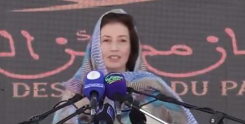 ظهرت المديرة العامة لليونسكو أودي آزولاي بالزي الموريتاني التقليدي ” الملحفة ” خلال خطابها في مهرجان مدائن التراث بمدينة شنقيط العتيقة .